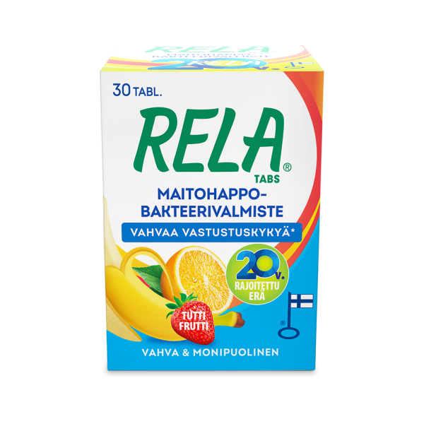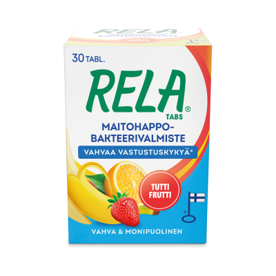 Rela-maitohappobakteerivalmisteet sisältävät kahta tutkittua ja korkealaatuista bakteerikantaa (Lactobacillus rhamnosus SP1 ja Bifidobacterium lactis BLC1) ja 3 miljardia bakteeria päiväannosta kohden. Rela Tabs -tuotteet sisältävät maitohappobakteerien lisäksi C-vitamiinia, joka on tärkeä vastustuskyvyn ylläpitäjä. Rela-tuotteet on valmistettu Suomessa ja niillä on avainlippumerkki.