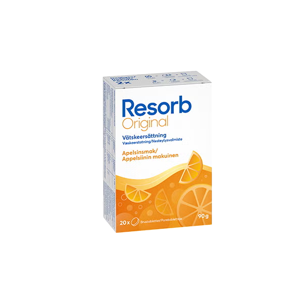 Resorb® Original on glukoosi-elektrolyytti poretabletti, jota käytetään tuomaan elimistöön nestettä ja suoloja.