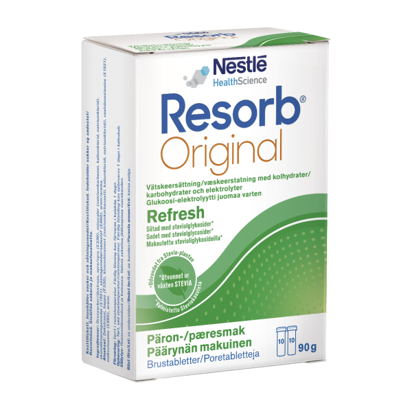 Resorb® Original on glukoosi-elektrolyytti poretabletti, jota käytetään tuomaan elimistöön nestettä ja suoloja.