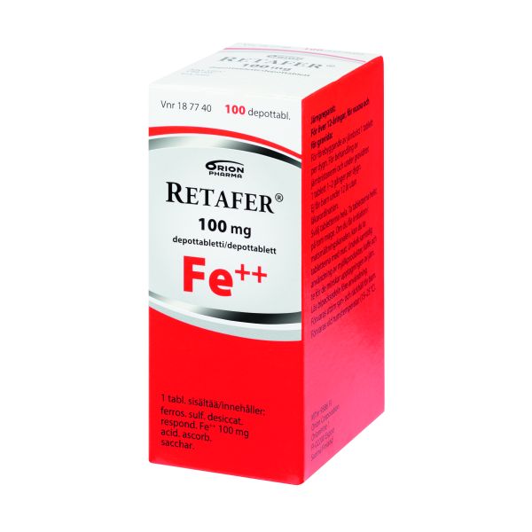 Retafer-depottabletteja käytetään raudanpuuteanemian ehkäisyyn ja hoitoon. Tabletti sisältää myös raudan imeytymistä tehostavaa C-vitamiinia. Kaikki Retafer tuotteet sopivat myös vegaaneille. Suomessa valmistettu.