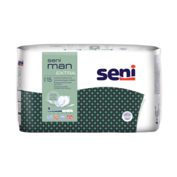 Seni Man Extra virtsankarkailusuojat on tarkoitettu miehille, joilla virtsankarkailu on tiputtelua tai vähäistä. Suojat ovat hengittäviä ja anatomisesti muotoiltuja ja mukautuvat vartalon liikkeisiin.