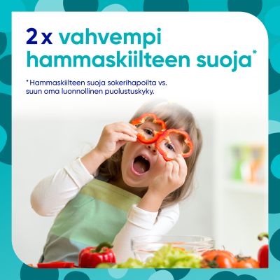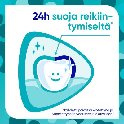 Arjen ruoat ja juomat sisältävät happoja, jotka voivat heikentää hammaskiillettä ja lisätä reikiintymisen sekä kiilteen kulumisen riskiä. ProEmalj Junior tukee kiilteen vahvistumista ja tarjoaa kaksinkertaisen suojan hammaskiilteelle* sekä auttaa suojaamaan hampaita reikiintymiseltä jopa 24 tunnin ajan säännöllisessä käytössä**.