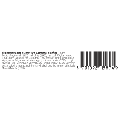 on flurbiprofeeni 8,75 mg. Muut aineet ovat makrogoli 300, kaliumhydroksidi (E