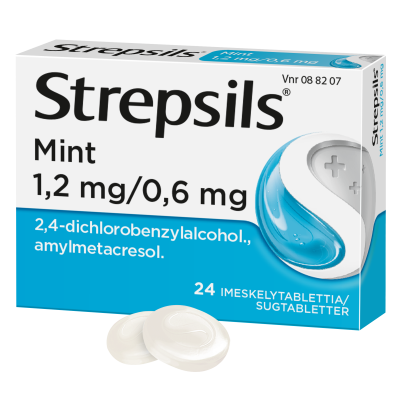 Strepsils MInt on antiseptinen imeskelytabletti, joka lievittää nielun arkuutta sekä lievittää kipua ja nielemisvaikeuksia suu- ja nielutulehduksessa. Strepsils MIntin vaikuttavat aineet (2,4-diklooribentsyylialkoholi ja amyylimetakresoli) ovat antiseptisiä aineita, joilla on bakteereja, sieniä ja viruksia tuhoavia sekä niiden lisääntymistä estäviä ominaisuuksia. Strepsils Mintin vaikutus alkaa 5 minuutissa ja jatkuu 2 tunnin ajan. Alle 12-vuotiaille lapsille ja pitkäaikaiseen käyttöön vain lääkärin määäräyksestä.