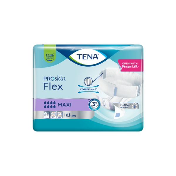 TENA Flex Maxi on vyöllinen inkontinenssisuoja, joka on helppo vaihtaa. Tuote sopii sekä täysin että osittain liikuntakykyisille ja myös liikuntakyvyttömille henkilöille.