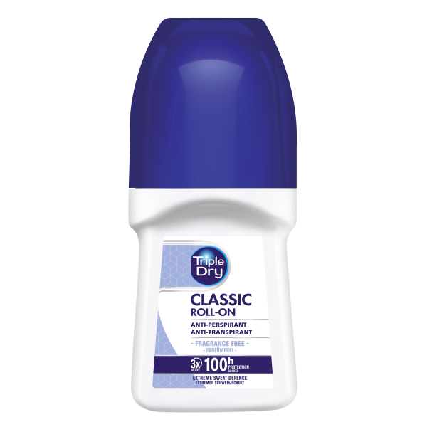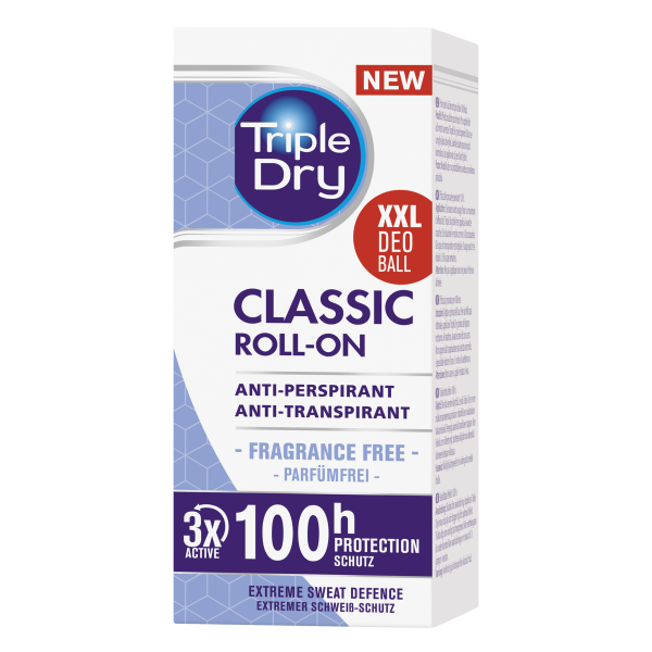 Triple Dry Classic 100h antibakteerinen antiperspirantti roll-on estää tehokkaasti liiallista hikoilua. Sen kliinisesti todistettu kolmivaiheinen suojauskompleksi ja aktiivinen koostumus tarjoavat maksimaalisen tehon ja pitkäkestoisen vaikutuksen jopa 100 tunnin suojan hikoilua ja hajuja vastaan, mukautuen kehon tarpeisiin ja lämpötilaan.
