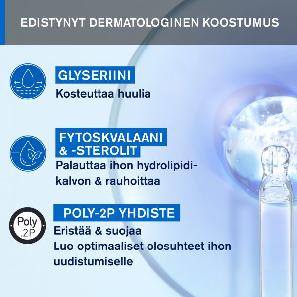 Suojaa: Kahden polymeerin yhdistelmä luo suojaavan kerroksen huulten pinnalle.