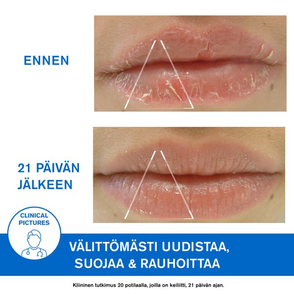 Uudistaa: Korjaa aktiivisesti rohtuneita ja vaurioituneita huulia.
