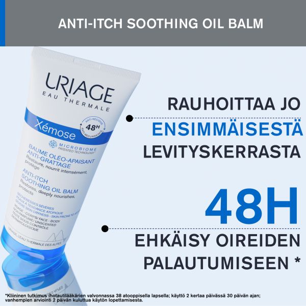 Xémose Anti-Itch Soothing Balm Öljyvoide rauhoittaa välittömästi kutinaa ja vähentää erittäin kuivien ihokohtien esiintymistä. Ainutlaatuinen ""voiteesta öljyksi"" muuntuva koostumus jättää iholle kevyen suojakalvon tarjoten pitkäkestoista mukavuutta ja suojaa.