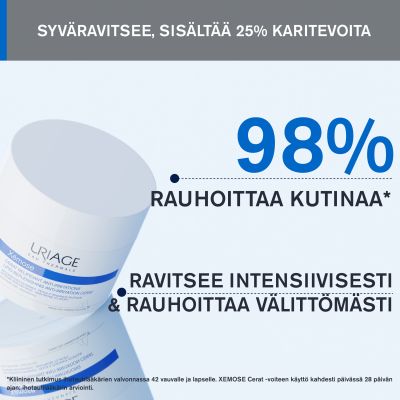 Erittäin täyteläinen Xémose Lipid-Replenishing Anti-Irritation Cerat Paikallishoitovoide ravitsee, suojaa ja rauhoittaa välittömästi kuivuudesta johtuvaa ja raapimista aiheuttavaa kutinaa. Voiteen koostumus sisältää 25% karitevoita tarjoten välittömän ja pitkäkestoisen mukavuuden tunteen kuivalle iholle.