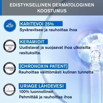 Pitkäkestoinen mukavuus: Kolminkertainen suojatoiminto Cerasterol 2F:n, TLR2-Regul-kompleksin ja Uriage Lähdeveden avulla auttaa palauttamaan ihon suojamuurin, säätelemään synnynnäistä immuunisuojaa ja tasapainottamaan ihon mikrobiomia.
