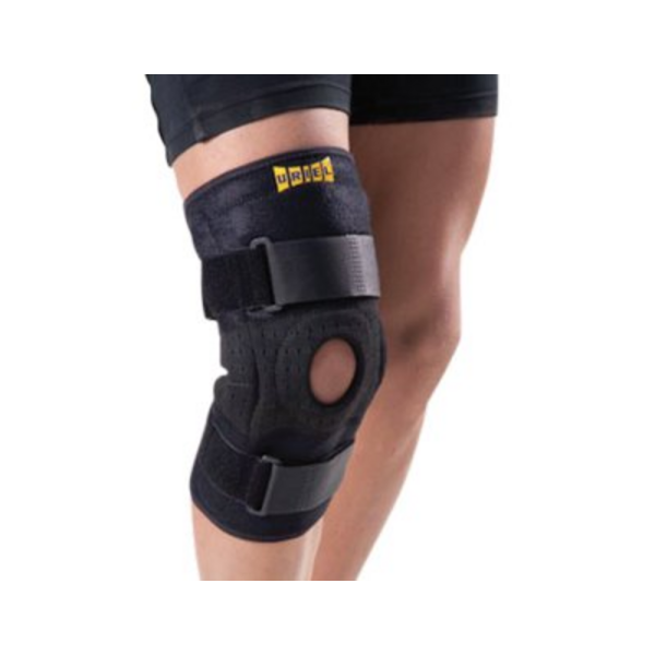 Uriel Active Knäskydd [AC43D], Skenor. Elastiskt men robust knäskydd är tillverkat av tvåsidigt neoprenmaterial, som kombineras med ett andningsbart mellanmaterial. Öppen knäskål förbättrar andningsförmågan och håller stödet bättre på rätt plats. Uriel Active Knäskydd [AC43D] är lämpligt för behandling och rehabilitering av skador på främre korsband, bakre korsband och sidoligament i knät.