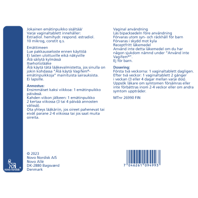 Vagifem-hoito ei sovi kaikille ja siihen liittyy tiettyjä riskejä. Varmista lääkkeen sopivuus itsellesi pakkausselosteesta, apteekista tai lääkäriltäsi etenkin, jos sinulla on muita sairauksia tai yliherkkyyksiä tai jos käytät muita lääkkeitä