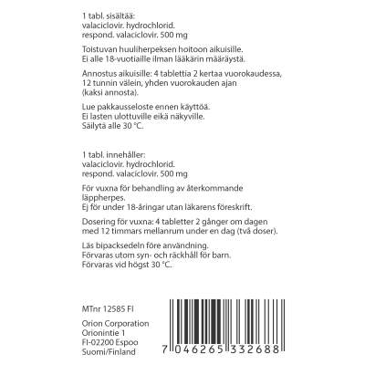 Annos huuliherpekseen on 4 tablettia (2000 mg) 2 kertaa vuorokaudessa, 12 tunnin välein. Tabletteja otetaan vain yhden vuorokauden ajan (kaksi annosta).
