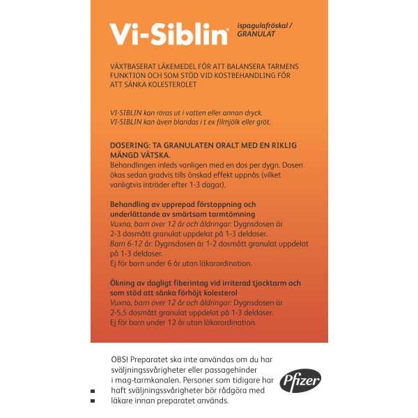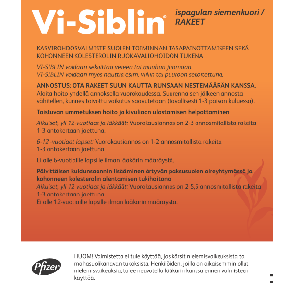 Vi-Siblin sopii toistuvan ummetuksen ja vatsan toimintahäiriöiden hoitoon päivittäiseen käyttöön.