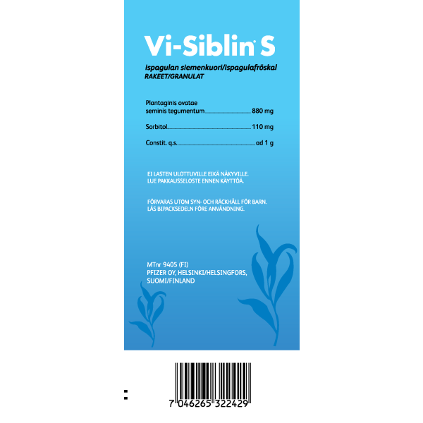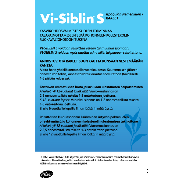 Vi-Siblin S sopii toistuvan ummetuksen ja vatsan toimintahäiriöiden hoitoon päivittäiseen käyttöön.