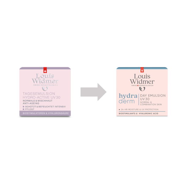 Widmer Hydraderm Day Emulsion UV 30 on kevyt geeliemulsio, joka kosteuttaa, hoitaa ja suojaa ihoa pitkäkestoisesti. UVA- ja UVB-suodattimet sekä aurinkosuojakerroin 30 tarjoavat luotettavan suojan auringon haitallisia säteitä ja muita ulkoisia ärsykkeitä vastaan. Emulsio parantaa ihon kosteudensitomiskykyä ja tukee ihon omia anti-age-toimintoja, ehkäisten ennenaikaista ikääntymistä.