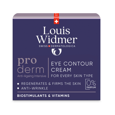 Widmer Proderm Eye Contour Cream on hajusteeton, tehokas anti-age-silmänympärysvoide, joka on kehitetty erityisesti herkälle ja ärtyneelle silmänympärysiholle. Voide sisältää korkean pitoisuuden tiivistettyjä aktiiviraaka-aineita, jotka uudistavat ihoa, vähentävät näkyvästi syviä ryppyjä ja tukevat ihon luonnollista korjaantumista.