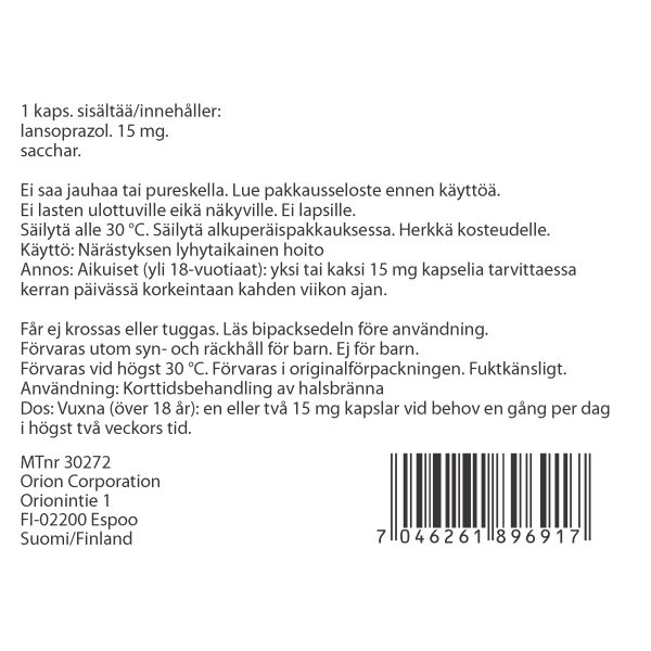 1-2 kapselia tarpeen mukaan kerran päivässä enintään kahden viikon ajan. Jos oireet eivät häviä kahden viikon yhtäjaksoisesta käytöstä huolimatta tai uusiutuvat pian hoidon jälkeen, tulee ottaa yhteyttä lääkäriin. Ei alle 18-vuotiaille.